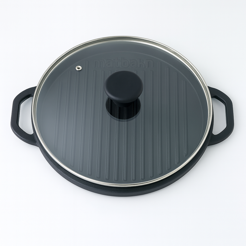 تابه گریل چدن سایز ۲۸ با پوشش ارگانیک و درب